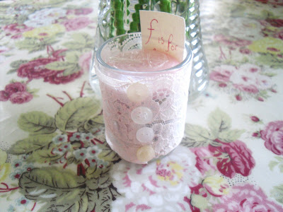 So, F was for Fragrance and a beautiful Fresh Cut Roses fragranced Yankee candle in a sweet glass holder, dressed in the most prettiest handmade lace and buttoned jacket.