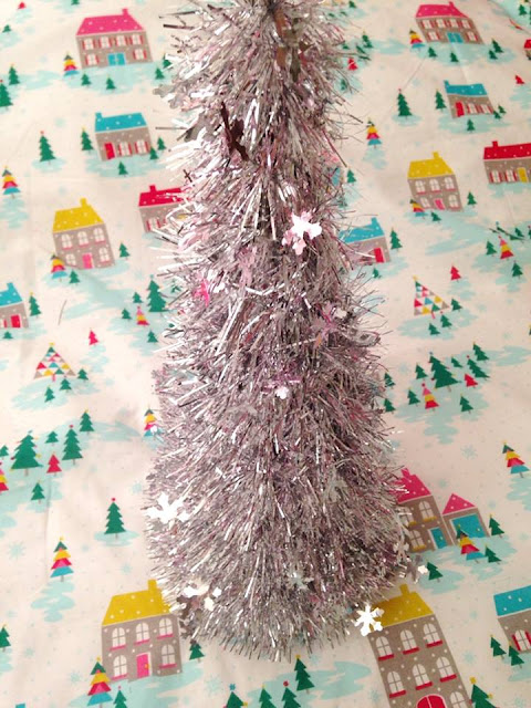 And the tinsel tree taking pride of place on the tall chest of drawers I painted and distressed.